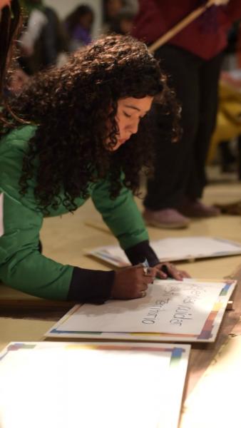 Por último, la jornada cerró con el espectáculo "No hay permiso" de Mariana Castro en el Centro Andino para la Educación y la Cultura (CApEC). El mismo fue una puesta performática que integró baile, poesía, canto e integración con lxs espectadores tanto en escena como en su proyección en el espacio público ya que la artista condujo con sus cantos a sumarse en el camino a la plaza pública donde el espectáculo tuvo su cierre. Luego, la artista respondió preguntas y comentarios del público.